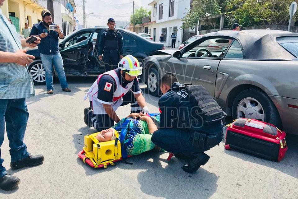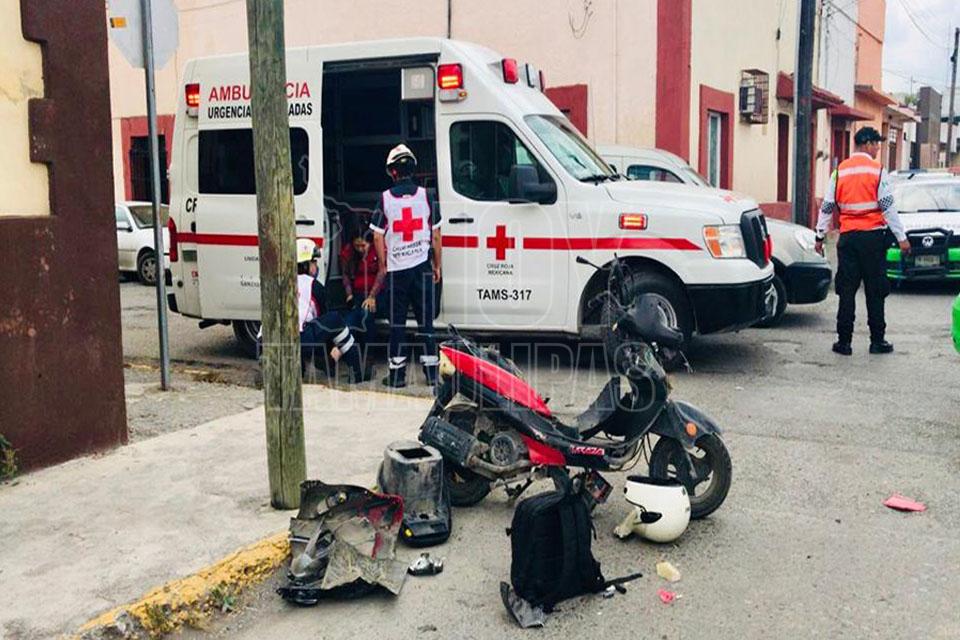 Motociclista omite alto y choca a microbús resultando lesionada en Ciudad Victoria