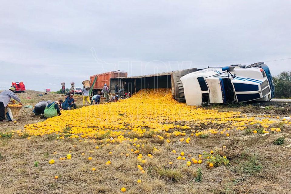 Vuelca tráiler cargado de naranja en la Victoria-Zaragoza