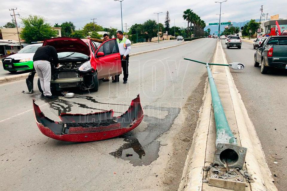 Automovilista se impacta contra luminaria en Ciudad Victoria