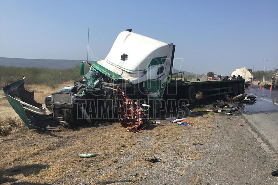 Choque entre tráileres deja dos lesionados en la Zaragoza-Victoria