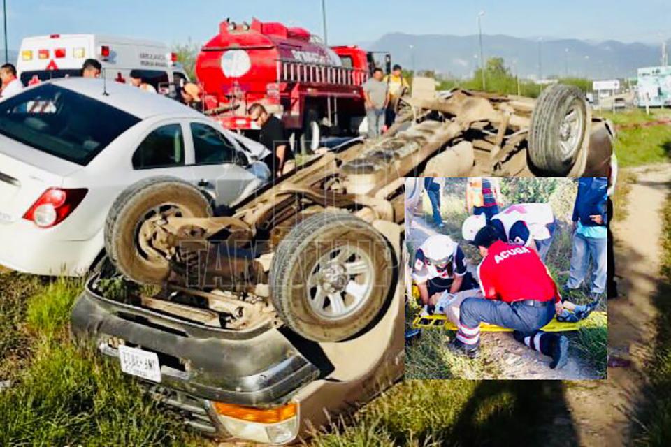 Choque-volcadura dejó dos lesionados en Ciudad Victoria