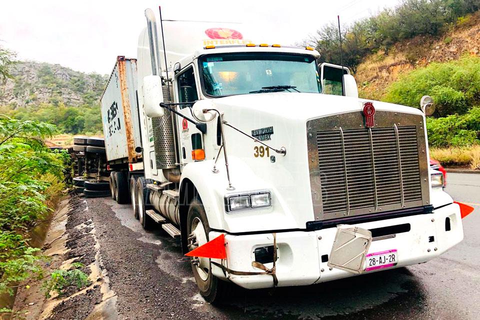 Vuelca contenedor de tráiler en la Rumbo Nuevo