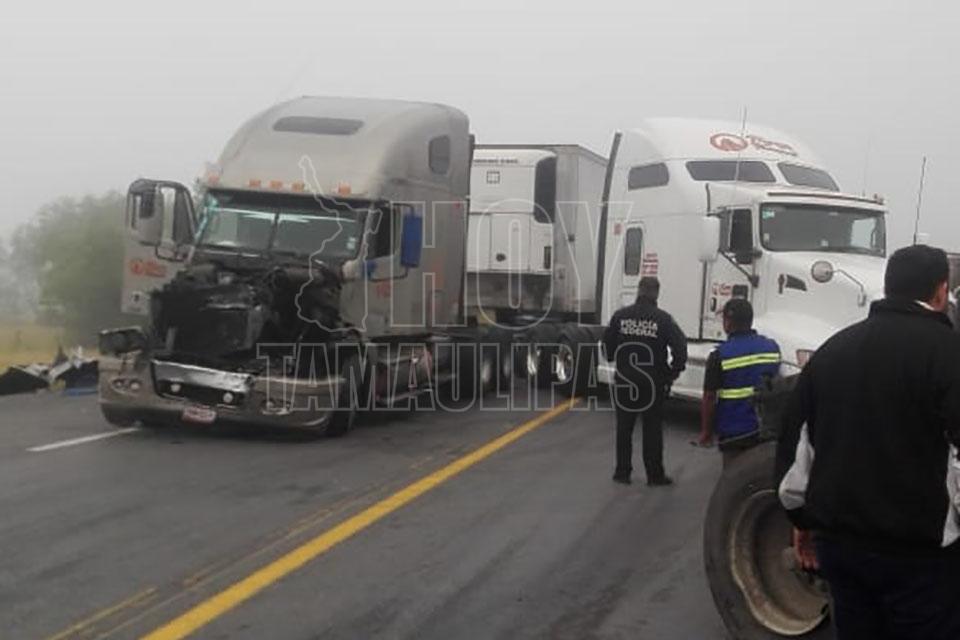 Choque entre tráileres en carretera Victoria-Matamoros dejó daños materiales