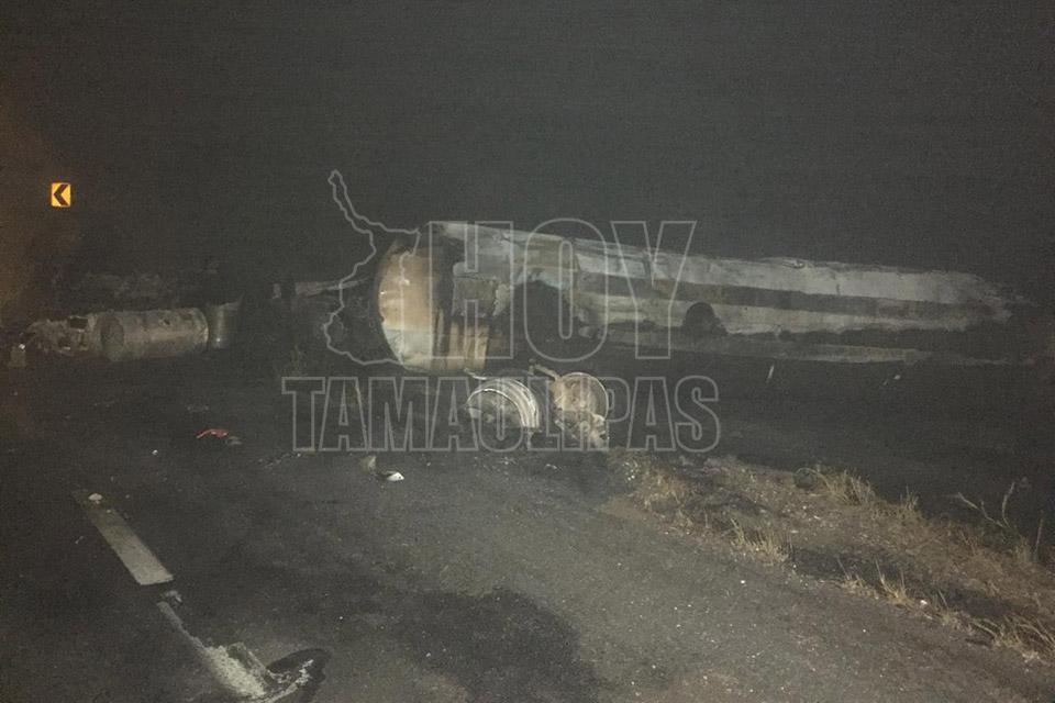 Pipa de gasolina se volcó e incendió en carretera Victoria-Matamoros
