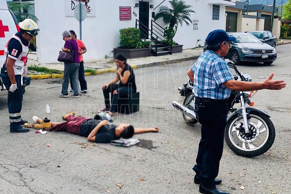 Omite alto y arrolla a pareja en una moto en Ciudad Victoria
