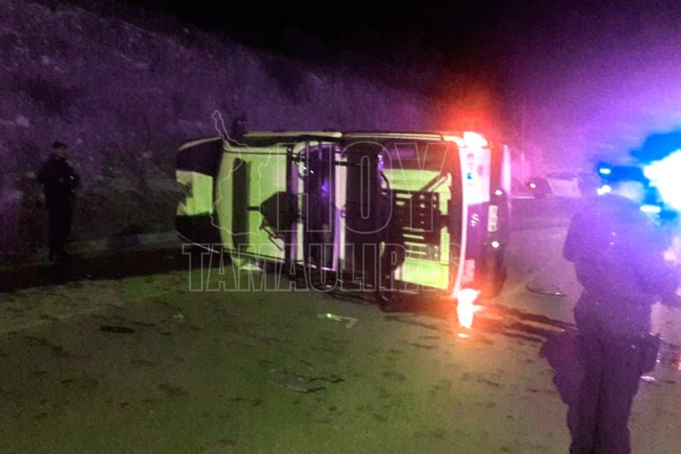 Vuelcan policías en libramiento de Ciudad Victoria; 4 lesionados