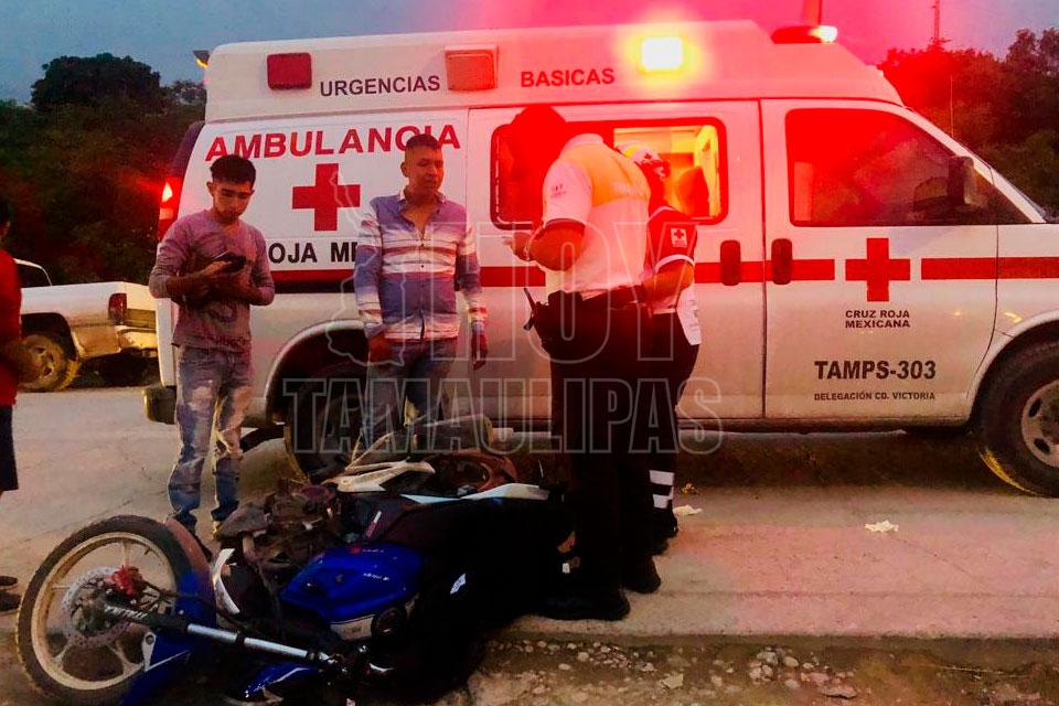 Invade carril y arrolla a motociclista; 1 menor lesionado en Ciudad Victoria