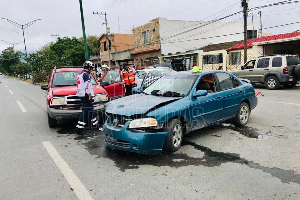 Se pasa alto, embiste a motocicleta y lesiona a 2 en Ciudad Victoria