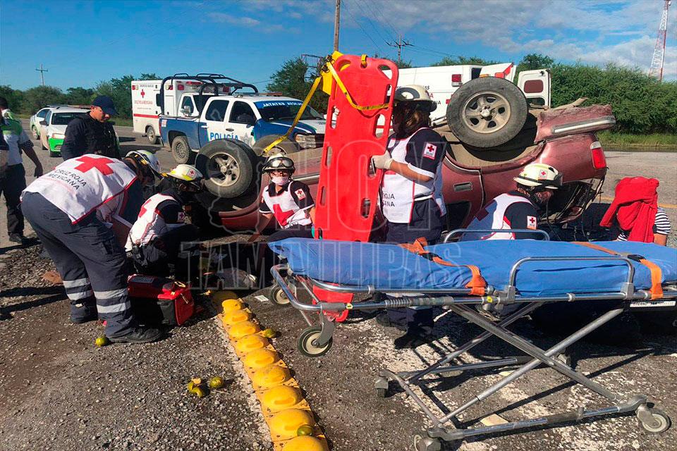 Choque con volcadura deja cuatro personas lesionadas en la Rumbo Nuevo