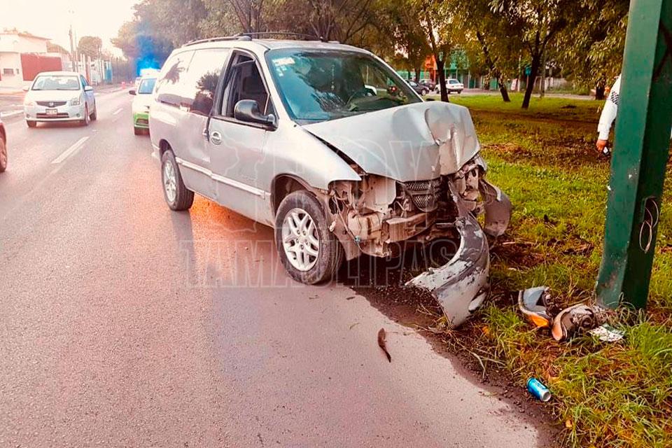 Ebrio choca contra luminaria; 2 lesionados en Ciudad Victoria
