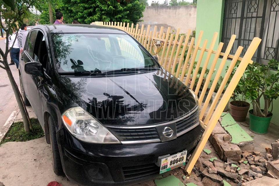 Choca contra carro y derriba el barandal de una casa en Ciudad Victoria