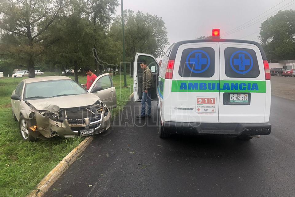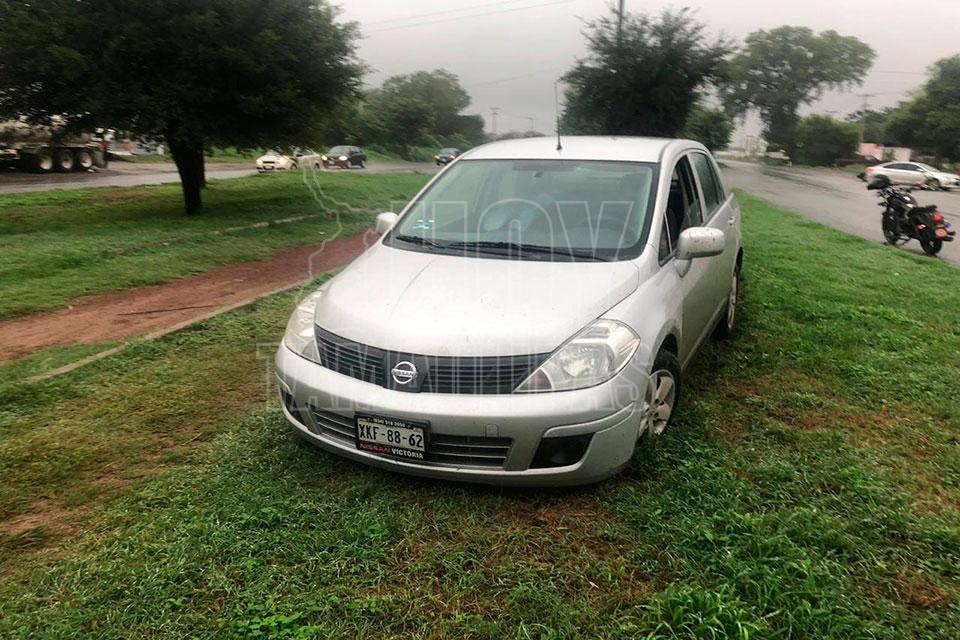Daña su auto al subirse a camellón por esquivar a otro en Ciudad Victoria