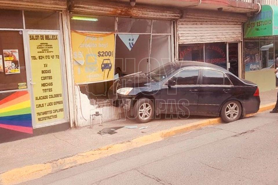 Se distrae con el celular y choca contra negocio en Ciudad Victoria