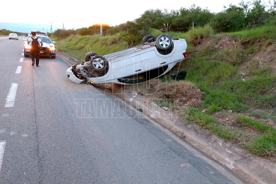 Vuelca policía investigador en la carretera Victoria-Monterrey