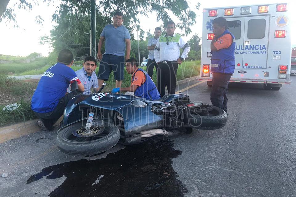 Derrapa motociclista y resulta lesionado en Ciudad Victoria