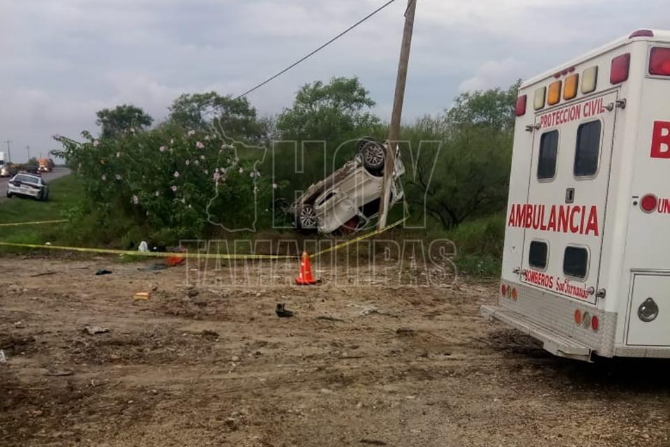 Mueren 2 hombres al volcar auto en la San Fernando-Matamoros
