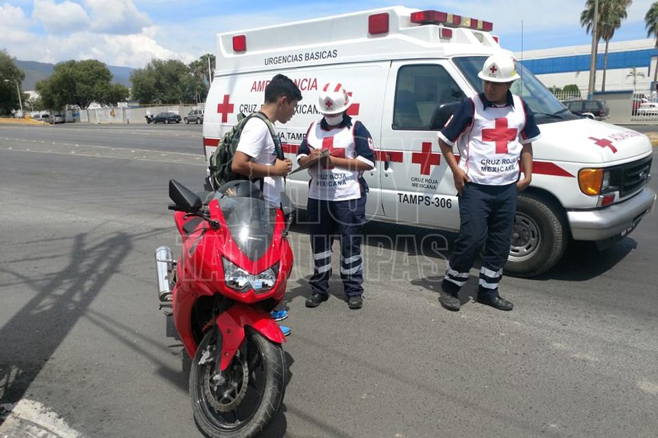 Motociclista se impacta contra coche y sale lesionado en Ciudad Victoria