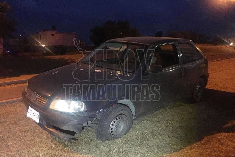 Borracho se sale del camino y se sube a camellón en Libramiento de Ciudad Victoria