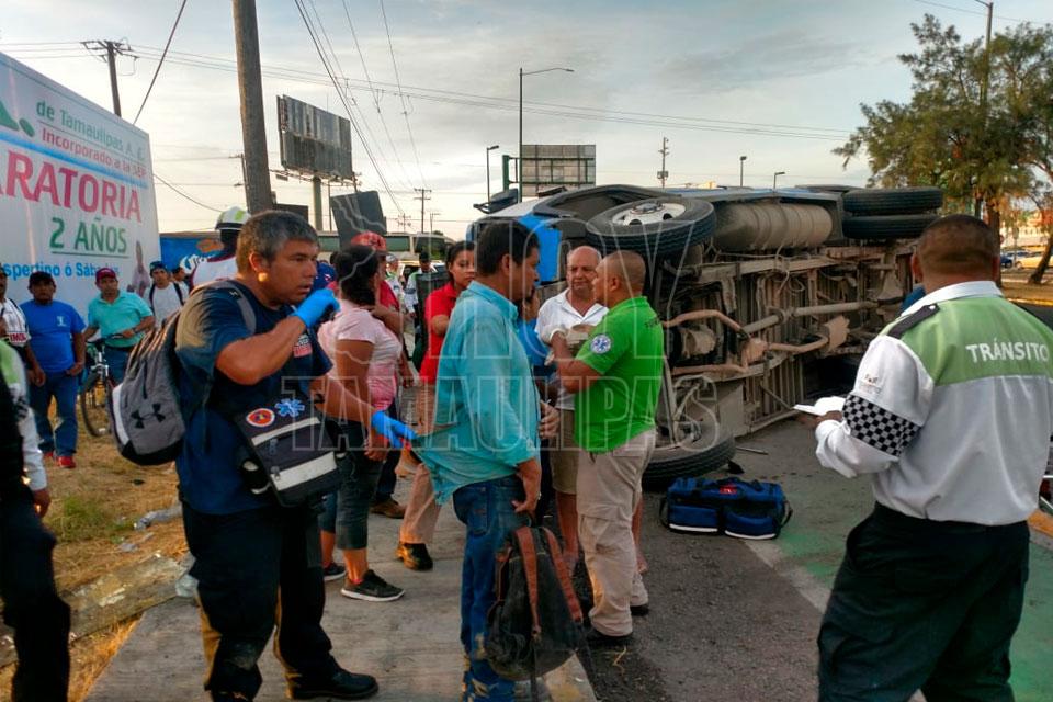Vuelca micro en Boulevard de Ciudad Victoria; 10 lesionados