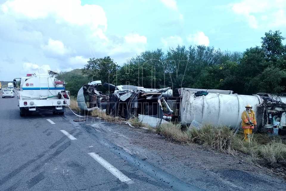 Vuelca pipa cargada con diésel en la Zaragoza-González