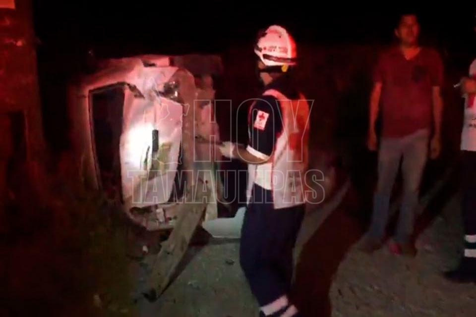 Cuatro lesionados al volcar camioneta en la Victoria-Tampico