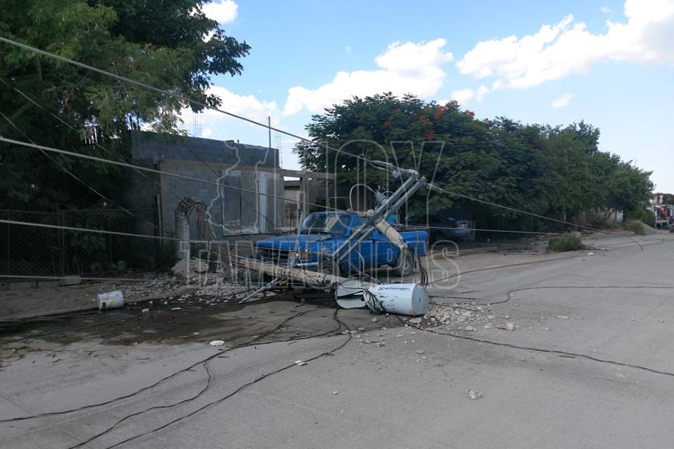 Tumba camión de volteo el tendido eléctrico en colonia de Ciudad Victoria