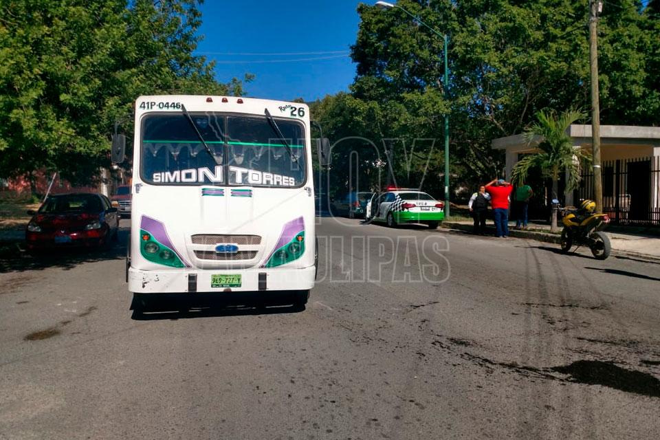 Motociclista invade carril y choca contra micro en Ciudad Victoria