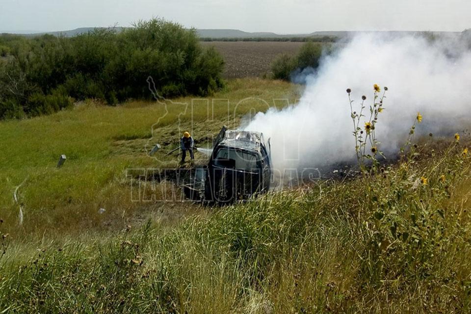 Dos calcinados deja fatal volcadura en la Aldama-Soto la Marina