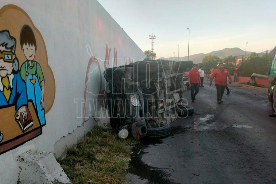 Conductora se distrae en el celular y vuelca en Ciudad Victoria