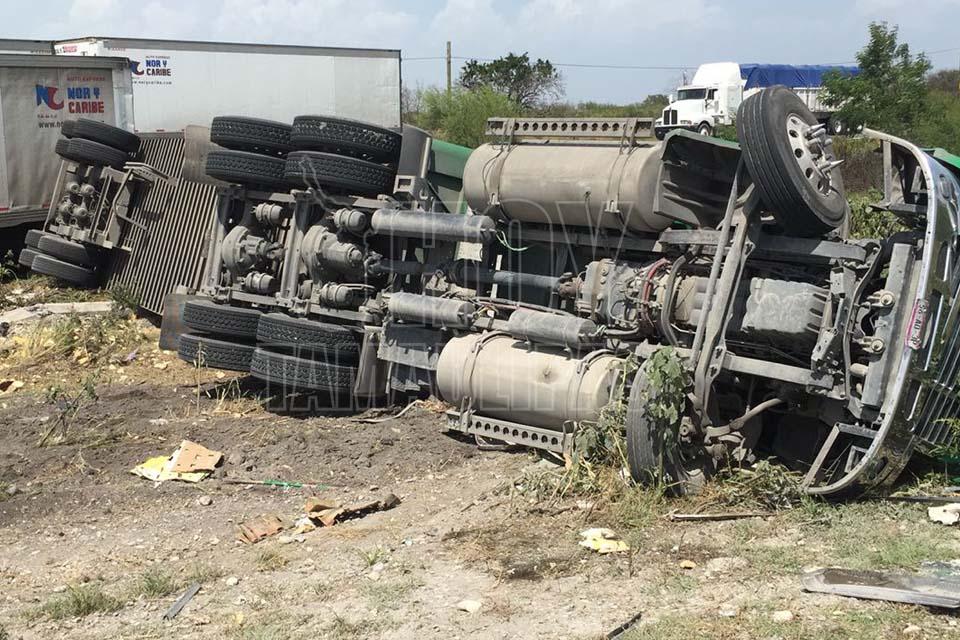 Vuelca tráiler cargado con envases en la Victoria-Soto la Marina