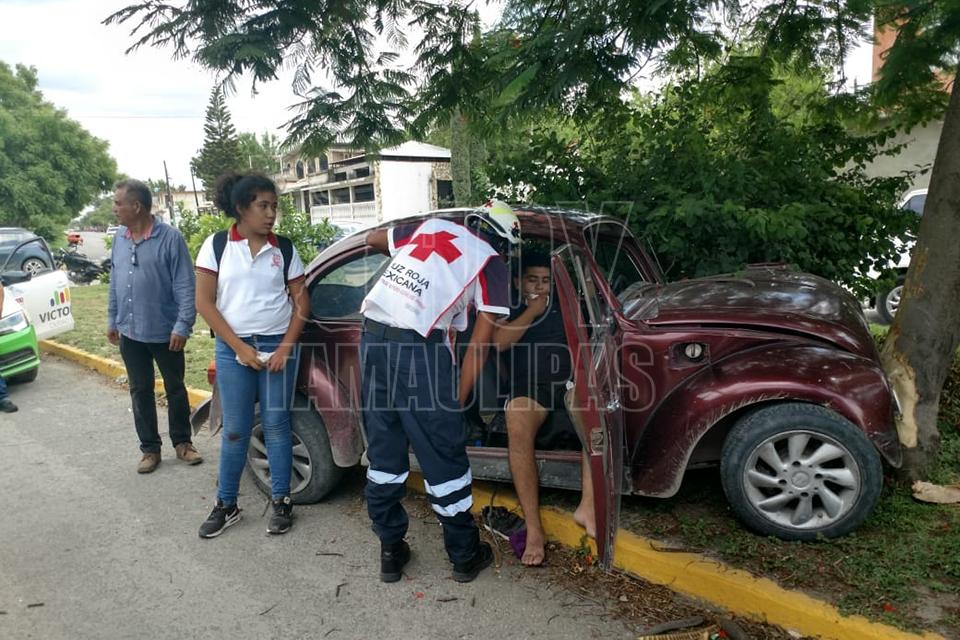 Dos lesionado al chocar "vocho" contra árbol en Ciudad Victoria