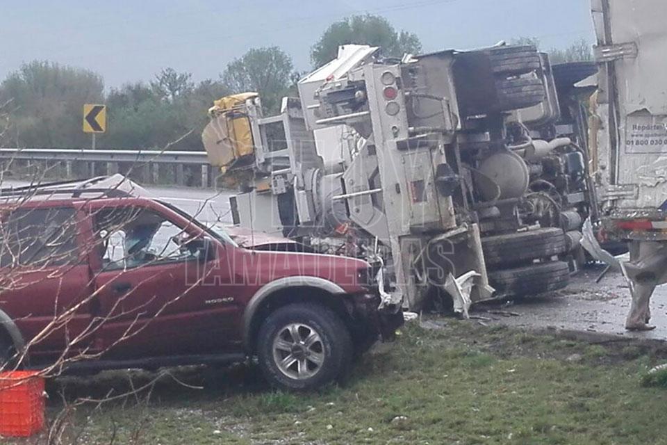 Le cierran el paso y termina volcado en Ciudad Victoria