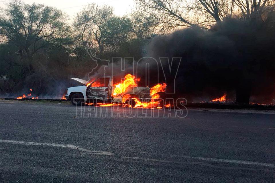 Incendio consume camioneta en la carretera Victoria-Monterrey