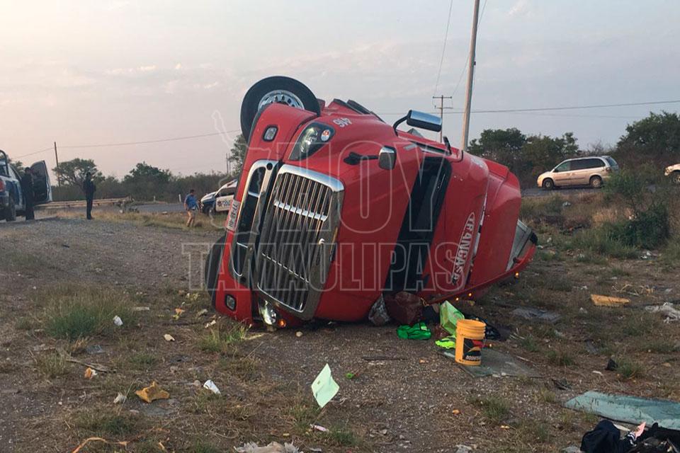 Vuelca camión cargado con Clamato en la Victoria - Soto la Marina