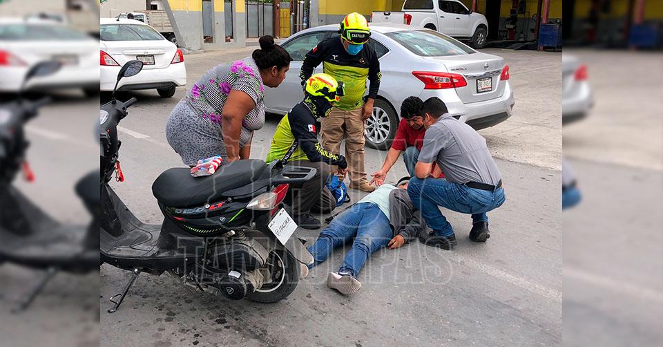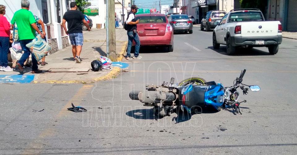 Motociclista sufre fuerte accidente al chocar contra camioneta en Ciudad Victoria