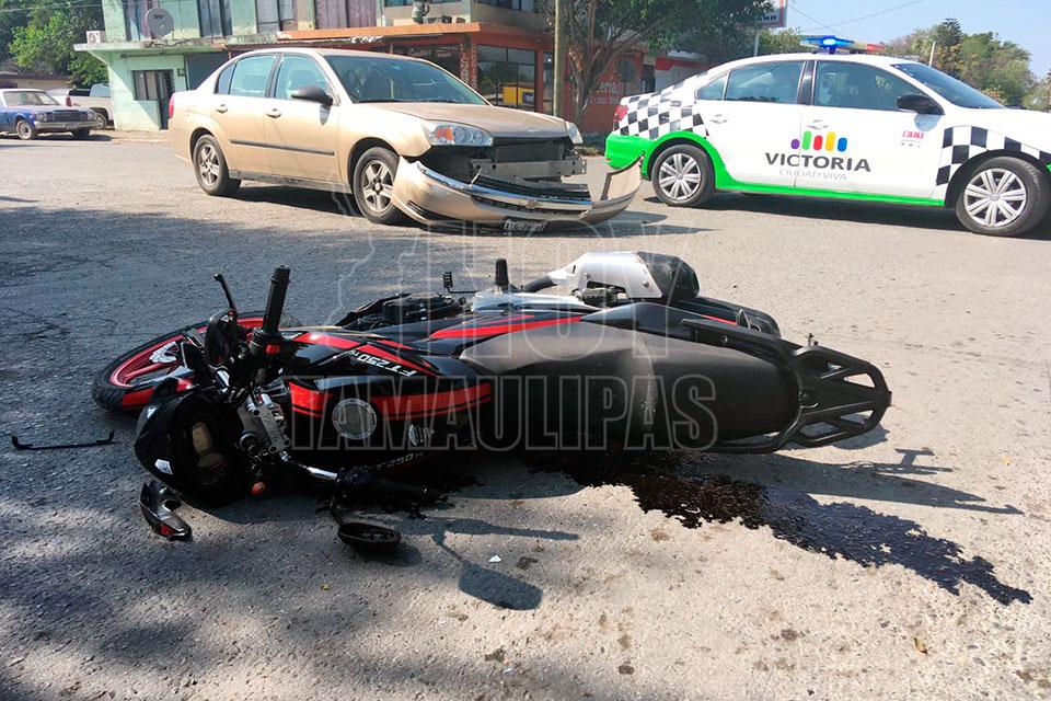 Mujer herida al chocar motocicleta con auto en Ciudad Victoria