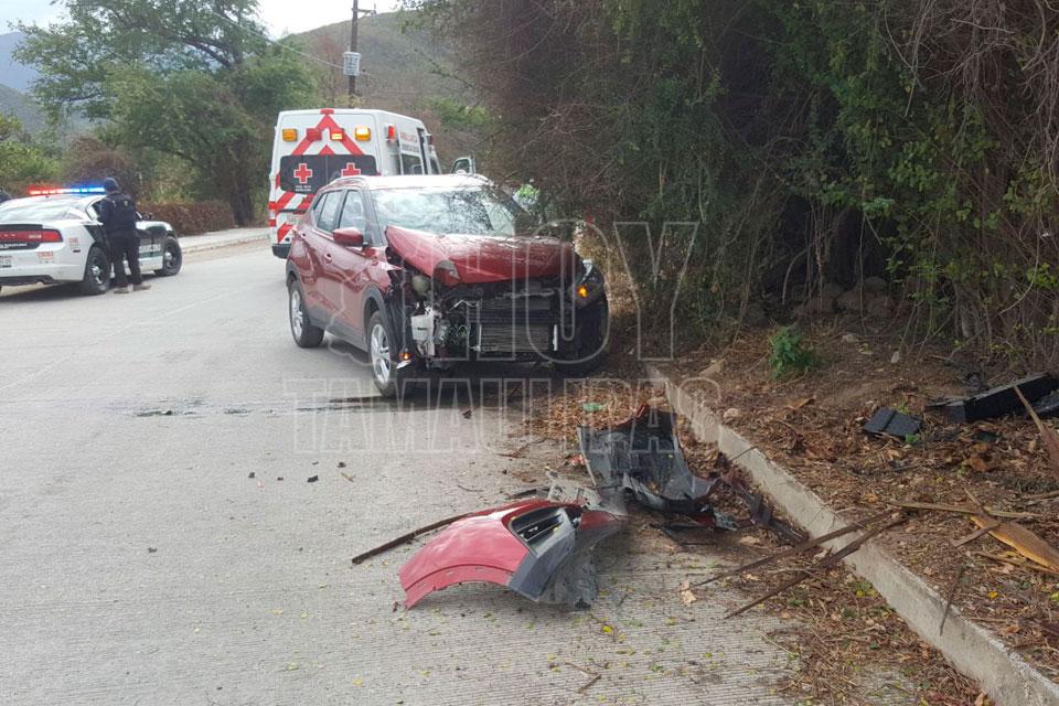 Omite alto, choca y resulta lesionada en Ciudad Victoria