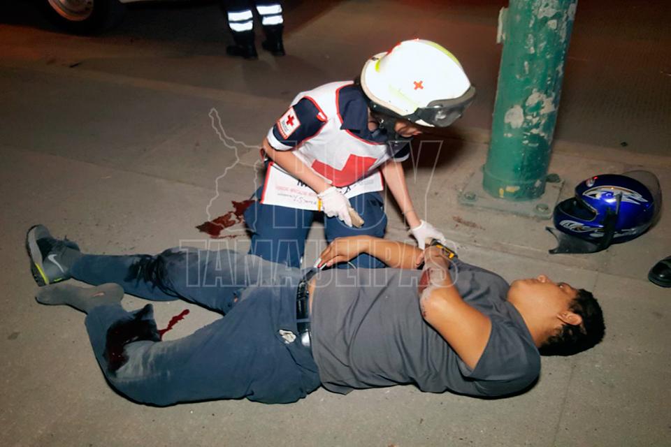Motociclista se fractura al chocar contra protectores de banqueta en Ciudad Victoria
