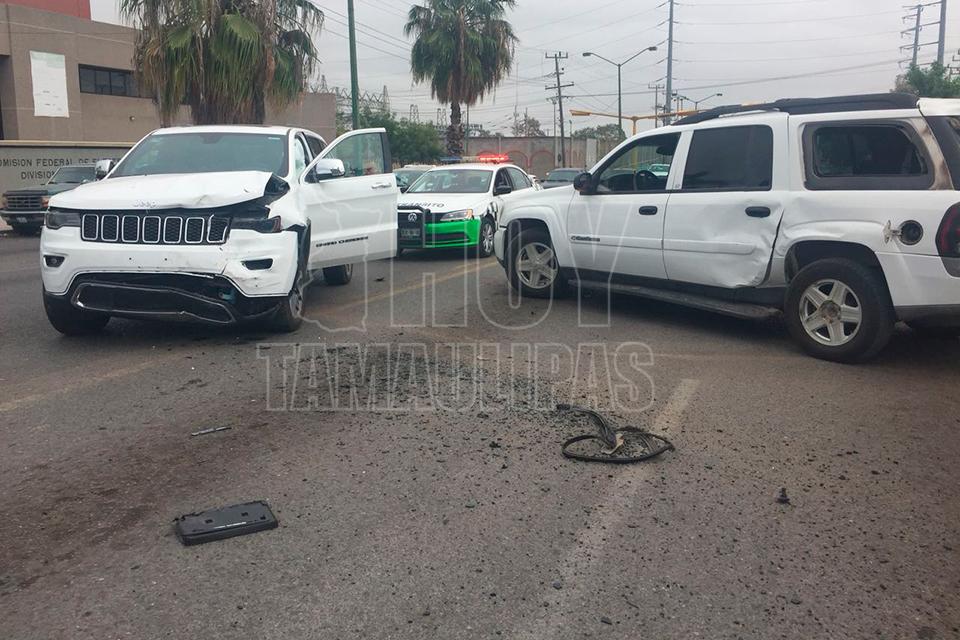 Choque entre camionetas deja cuantiosos daños materiales en Ciudad Victoria