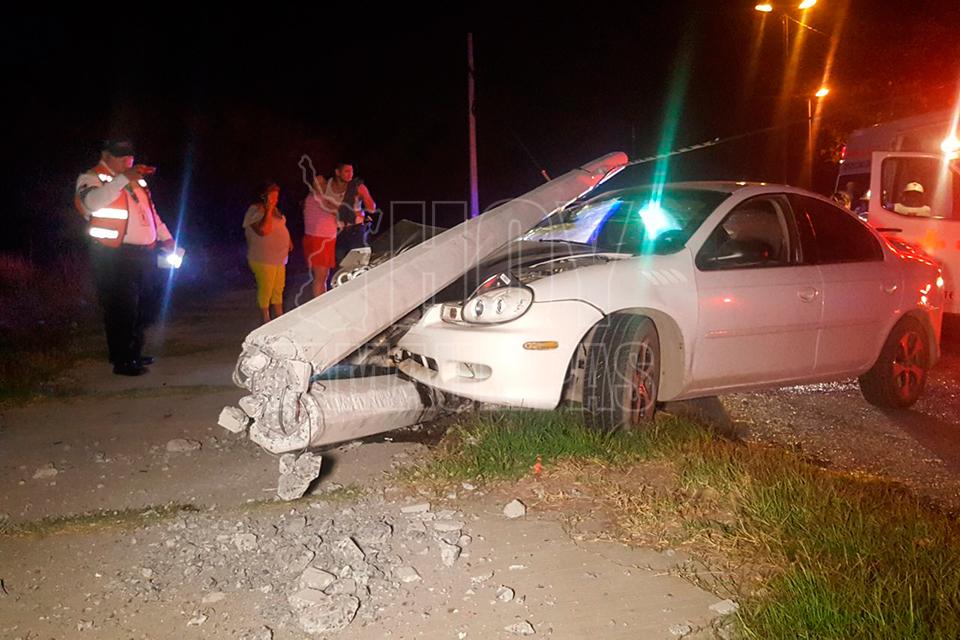 Dos lesionados al estrellar el vehículo contra un poste en Ciudad Victoria