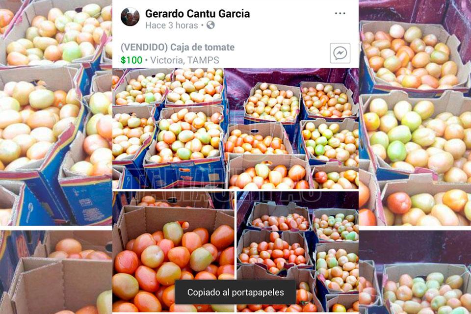 Venden en Facebook tomate de tráiler volcado en carretera a Soto la Marina