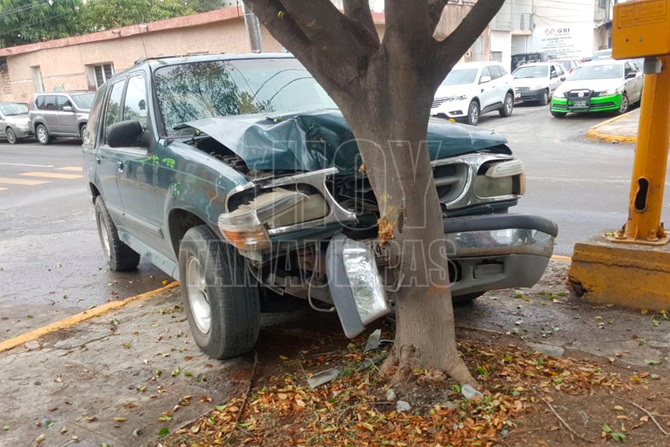 Impacta su camioneta contra árbol al esquivar un coche en Ciudad Victoria