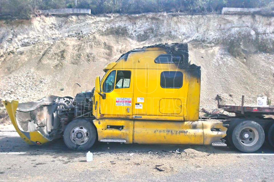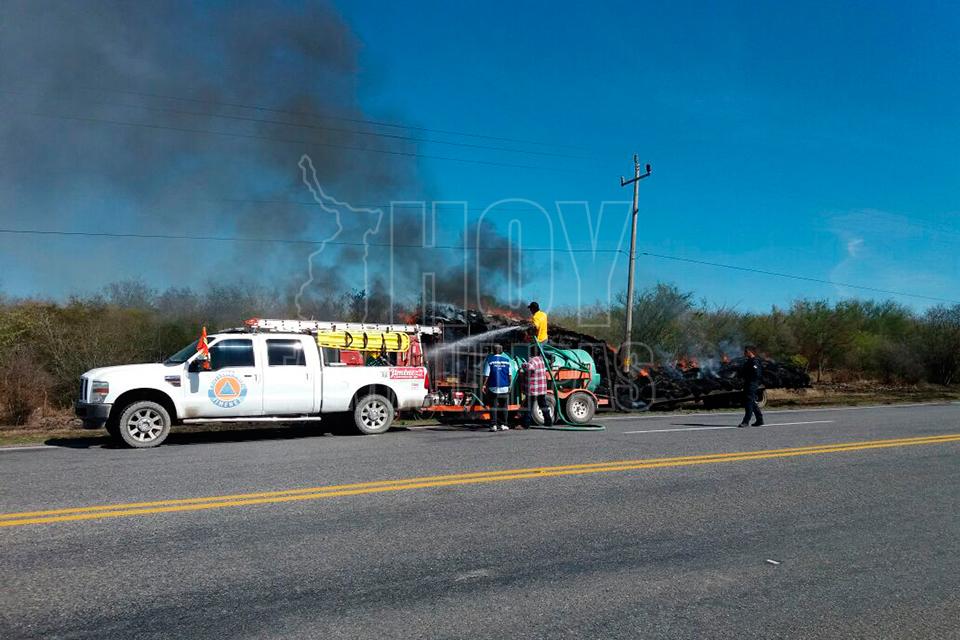 Se incendia camión con pacas de zacate en la Victoria-Matamoros