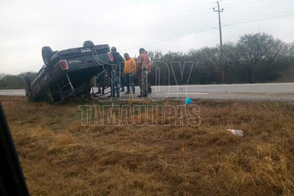 Vuelca su camioneta en la carretera Victoria-Matamoros