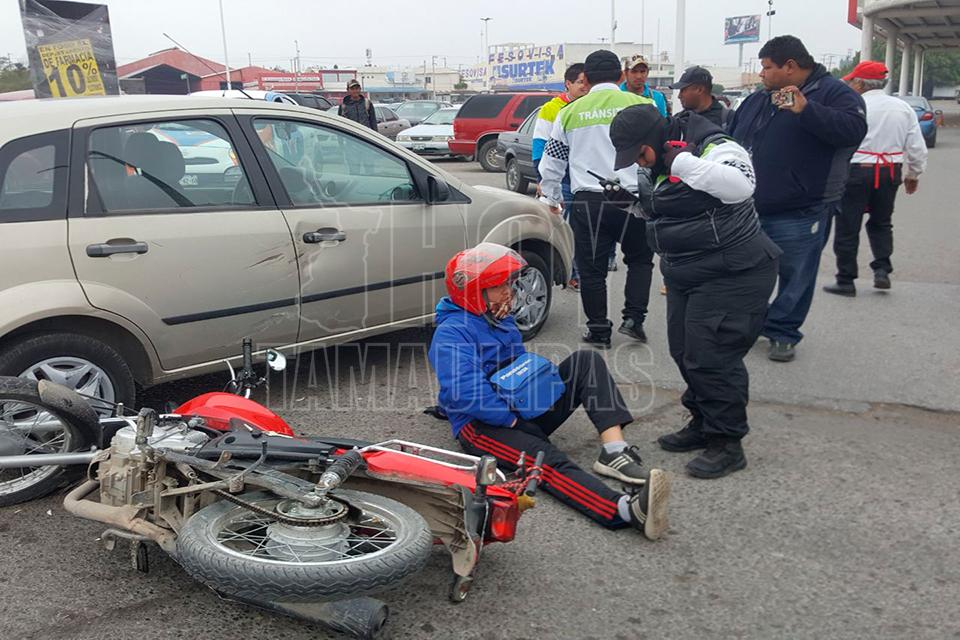 Motociclista lesionado al impactarse contra carro en Ciudad Victoria
