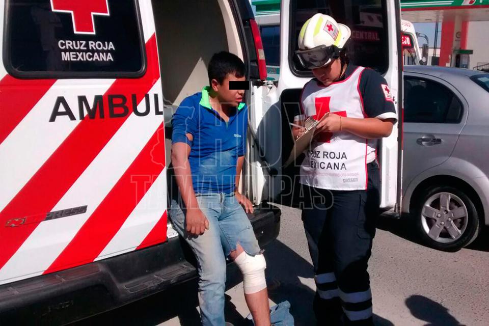 Motociclista lesionado al chocar con microbús en Ciudad Victoria