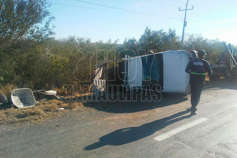 Se salvan de morir en volcadura cuando viajaban rumbo a Río Bravo