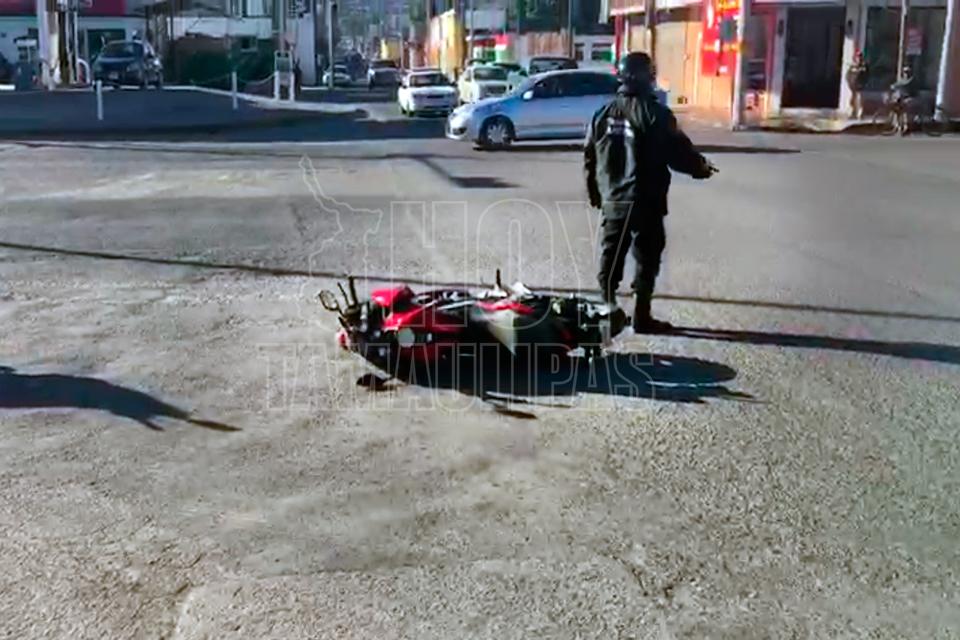 Microbús tumba a motociclista en Ciudad Victoria