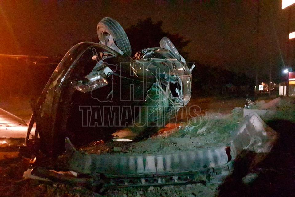 Se estrella contra base de semáforo en Ciudad Victoria y huye