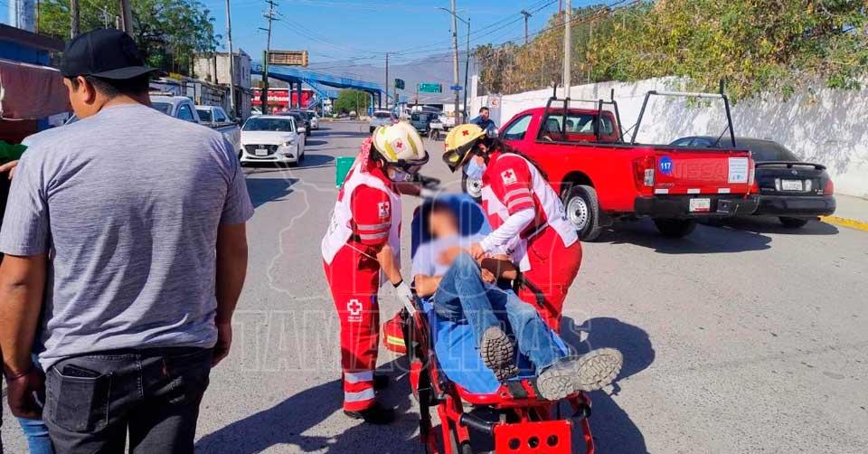 Mujer resulta herida tras choque entre motocicleta y camioneta en Ciudad Victoria